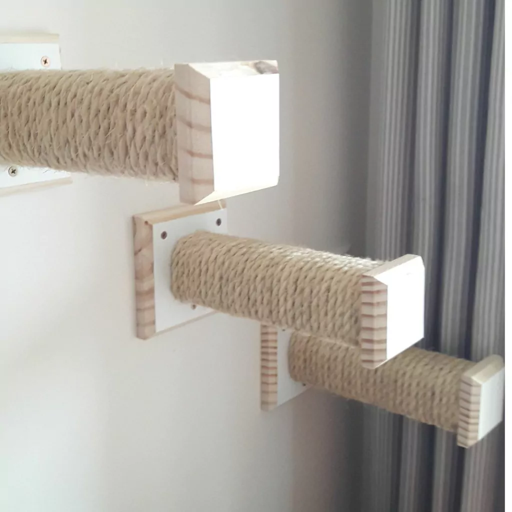 03 Unidade Arranhador/Step : feito em madeira de pinus lixada e corda de sisal de 8mm. Medidas : base parede 14,5cm x 14,5cm comp. 28cm toquinho 7cm x 7cm