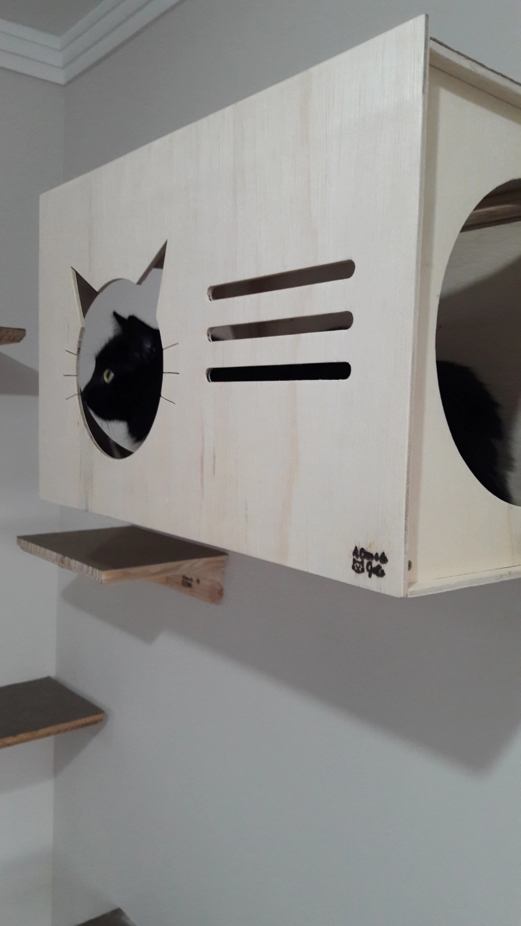 Este produto é feito artesanalmente em madeira de compensado lixada (podendo assim ter pequenas alterações de tamanho e tonalidade), possui forração em carpete na cor marrom (antiderrapante/para afiar as unhas) na parte superior e inferior. Esta peça possui 03 passagens (24cm diâmetro) sendo 01 na parte superior ( a ideia é proporcionar o máximo de interatividade aos gatinhos). Este produto não é indicado para área externa ( para maior durabilidade), acompanha buchas e parafusos ( não nos responsabilizamos pela instalação do produto) indicamos a instalação em paredes de alvenaria. Esta peça também pode receber revestimento em laminado pet texturizado ( produto feito à partir da reciclagem de garrafas pet) criando assim peças bicolores ( mantendo sempre detalhes em madeira) cores disponiveis preto/branco/amarelo e ou azul claro. ( VALE LEMBRAR que para a opção revestimento existe um valor adicional para o serviço, no produto você encontra o botão para clicar caso queira opção revestimento ).Produto feito à mão sendo assim pode existir um PRAZO PARA A PRODUÇÃO de até 15 dias + prazo correio.