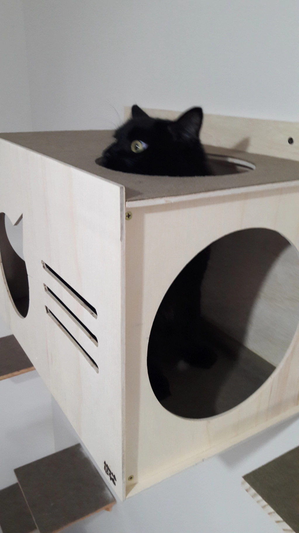 Beneficios: serve como esconderijo para os mais tímidos,local confortável para o soninho,observar toda movimentação da casa,interativo pois tem uma passagem na parte superior criando assim mais aventura para os curiosos :)