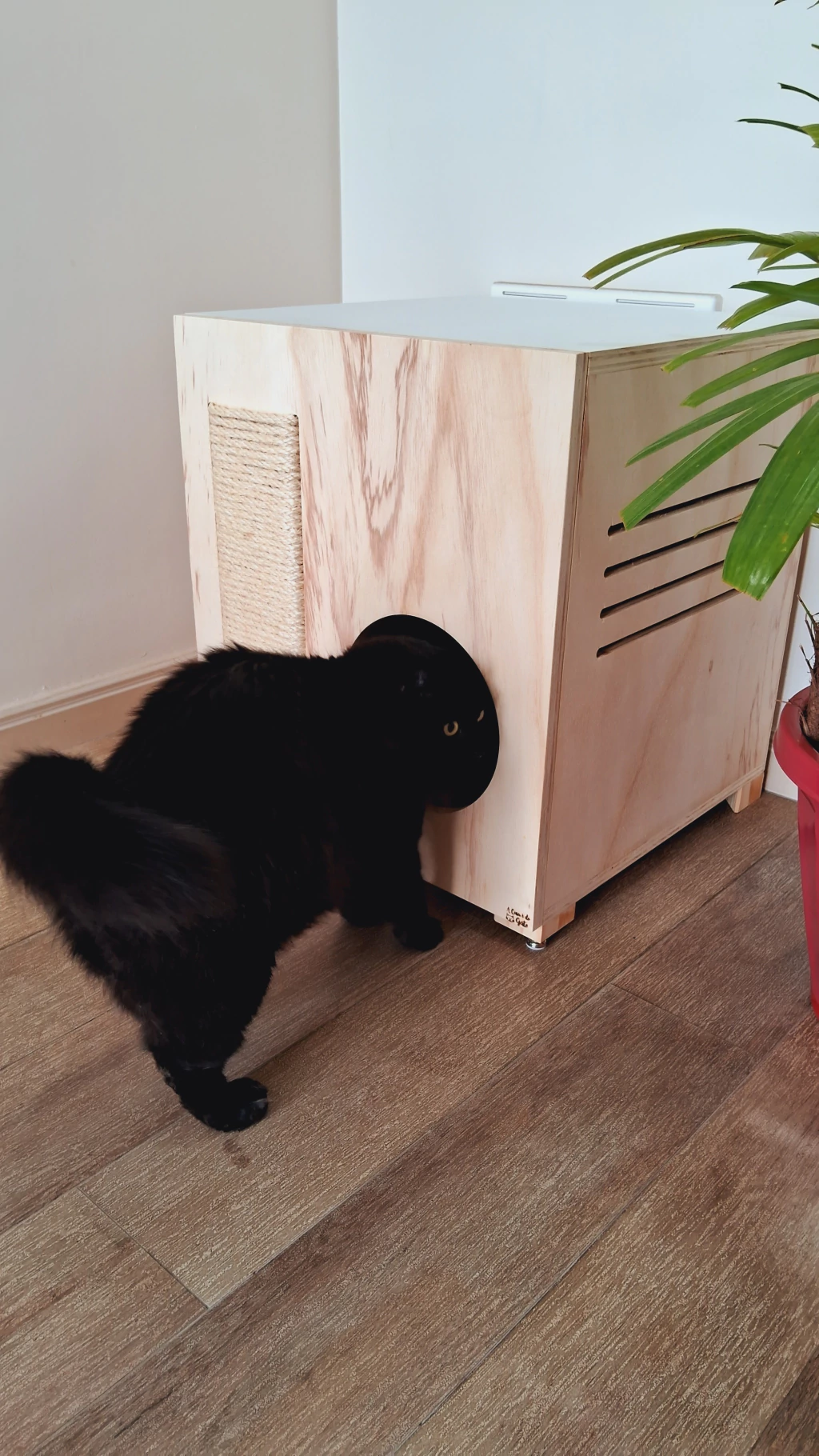 Cansada (o) de juntar a famosa áreia da bandeja ??!! Que tal este nosso móvel funcional ? Além de ser uma peça decorativa ele oferece para seu gatinho um cantinho reservado e aconchegante para suas necessidades,afinal para eles nesta hora privacidade é tudo !! Vale lembrar que: